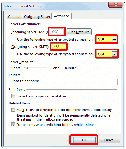 Incoming Mail Server Security (None/SSL/TLS): SSL