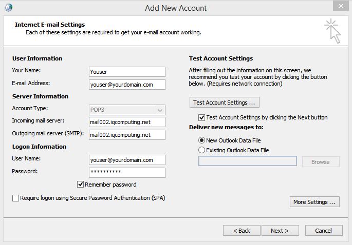 Incoming Mail Server Type (POP3 or IMAP):POP3